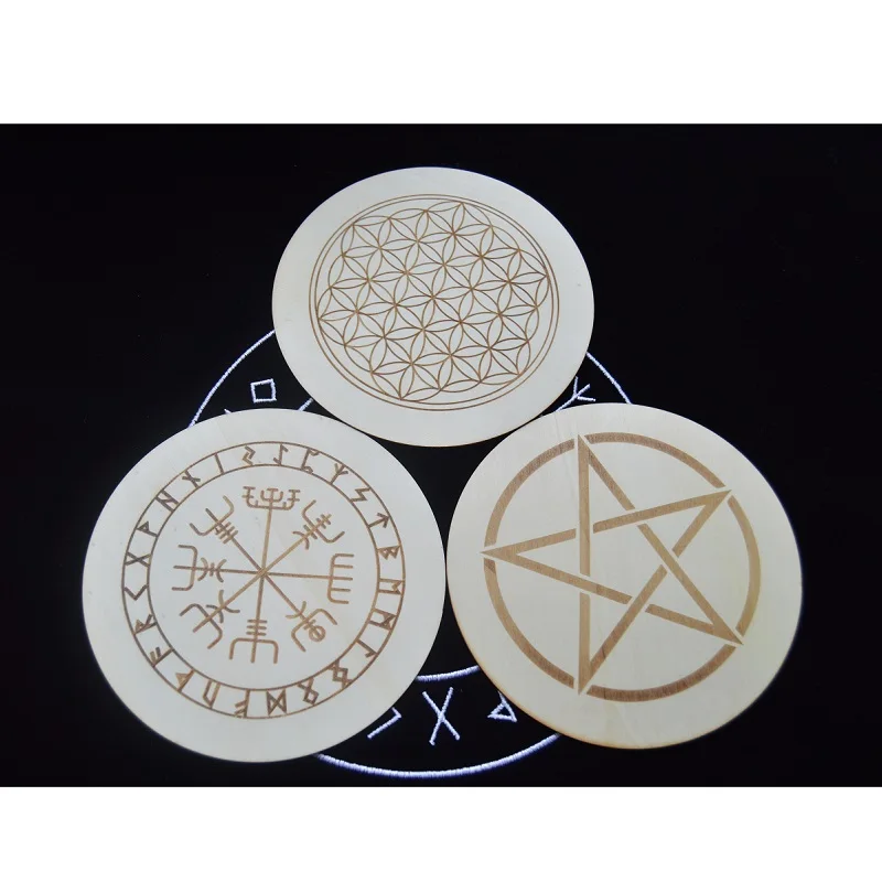 Wood Round Altar Tile/Pad with viking compass ,Pentagramwitchcraft supplies Divination mat wicca props Ornaments