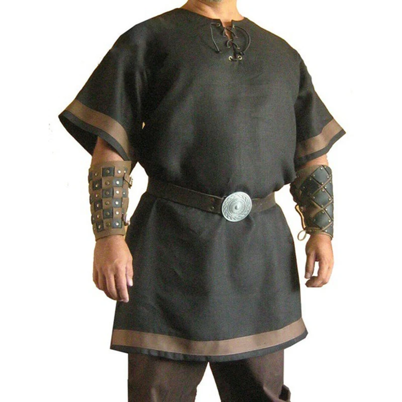 Men Cosplay Medieval Vintage Renaissance Viking Warrior Knight Costume Men Nordic Army Pirate Tunic Shirt Tops Renaissance s-5XL