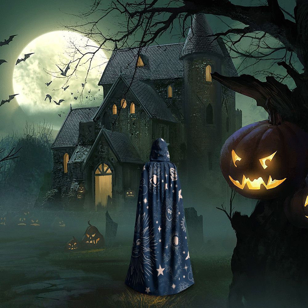 Adult Cloak Cape Hooded Space Galaxy Constellation Zodiac Star Medieval Costume Witch Wicca Vampire Elf Purim Carnival Party