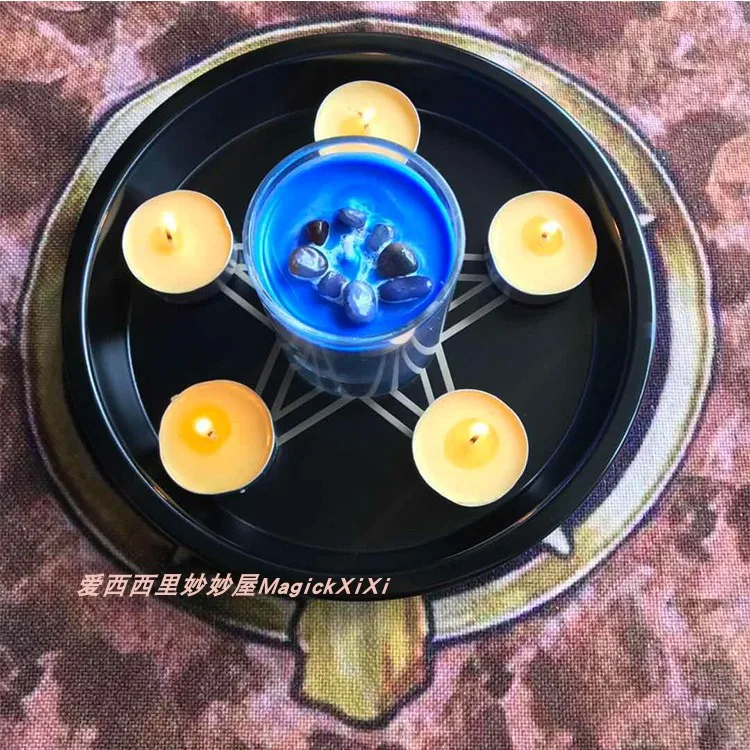 Astrology Pentagram Candlestick table altar plate Triquetra Divination Wicca ceremony Accessories