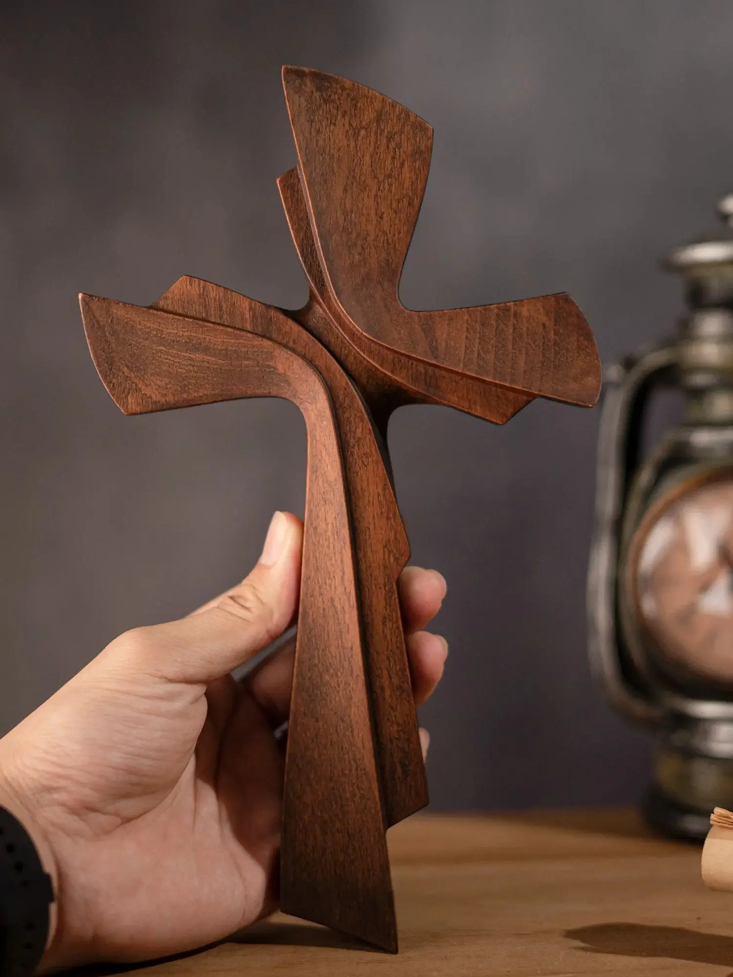 Wooden cross. Handmade wooden large carved cross. Decorative modern cross, perfect for home decoration.