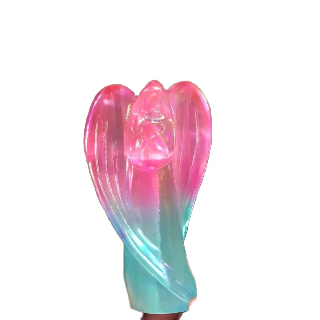 ardian Angel Figurine Natural Electroplating Color Selenite Raw Crystals Gypsum Crystal Healing Stone Home Decor DIY Gifts 1PC