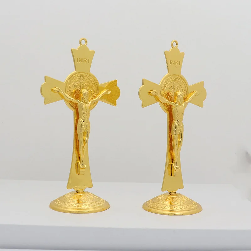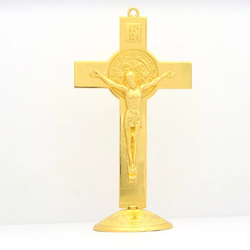 Jesus Cross Saint Benedict Golden Color Priest Catholic Church Utensils Christ Car Home Decor Religious Orthodox Decoration