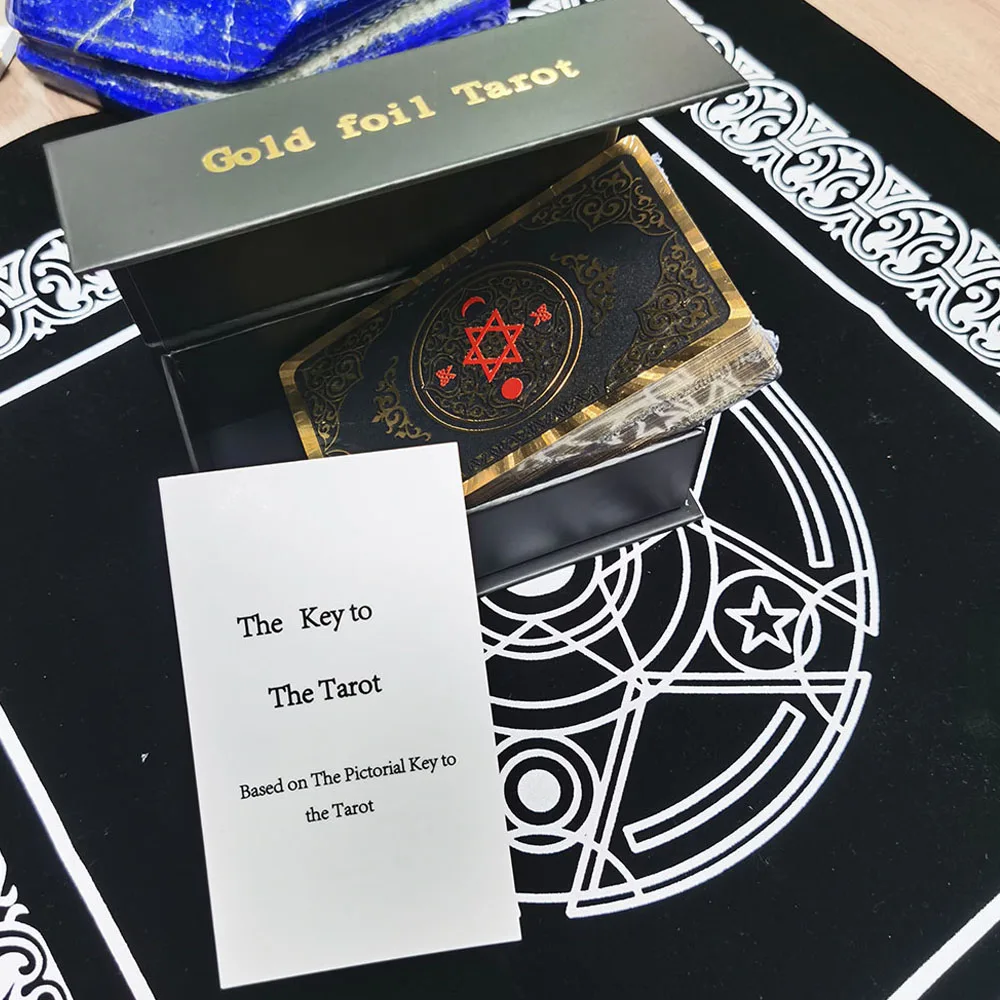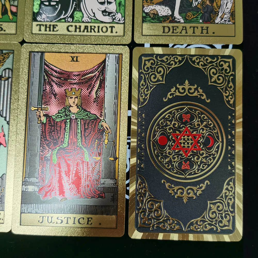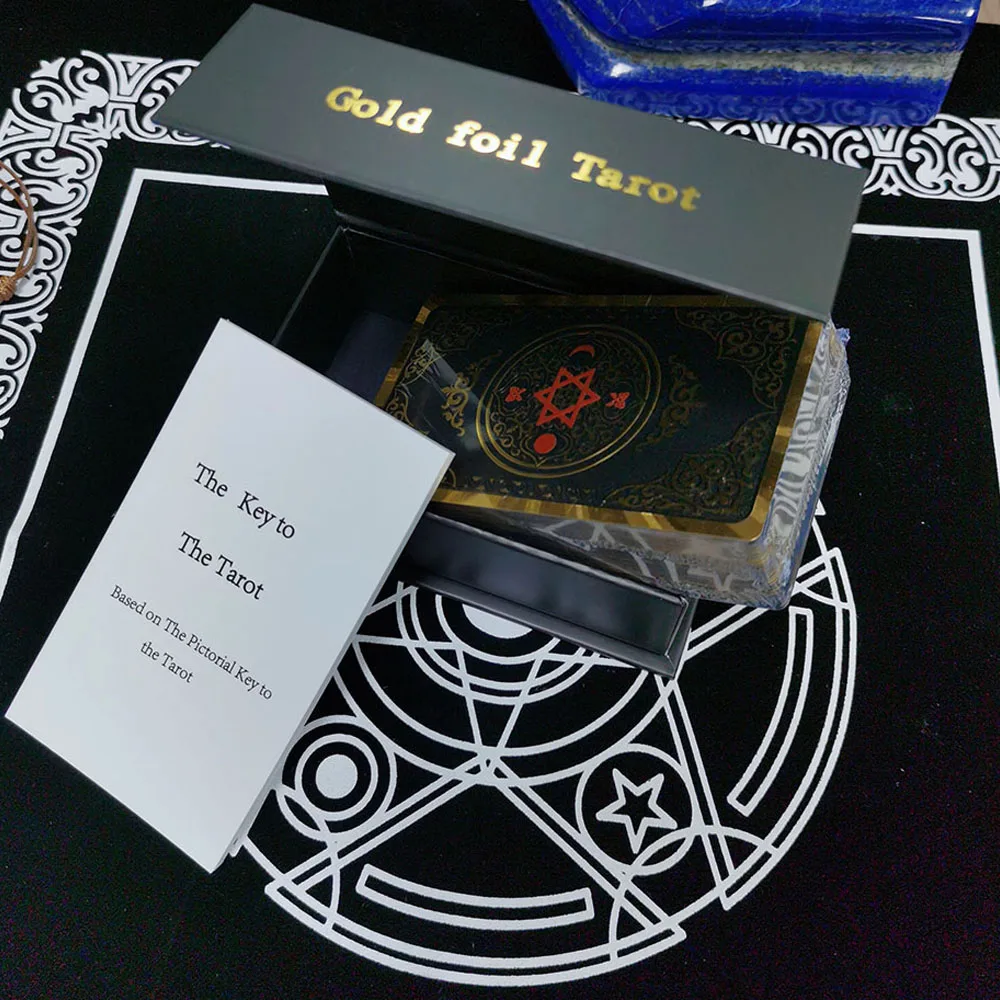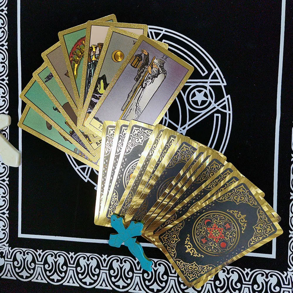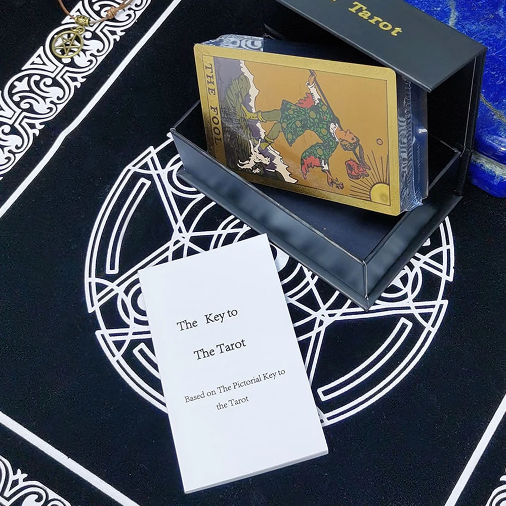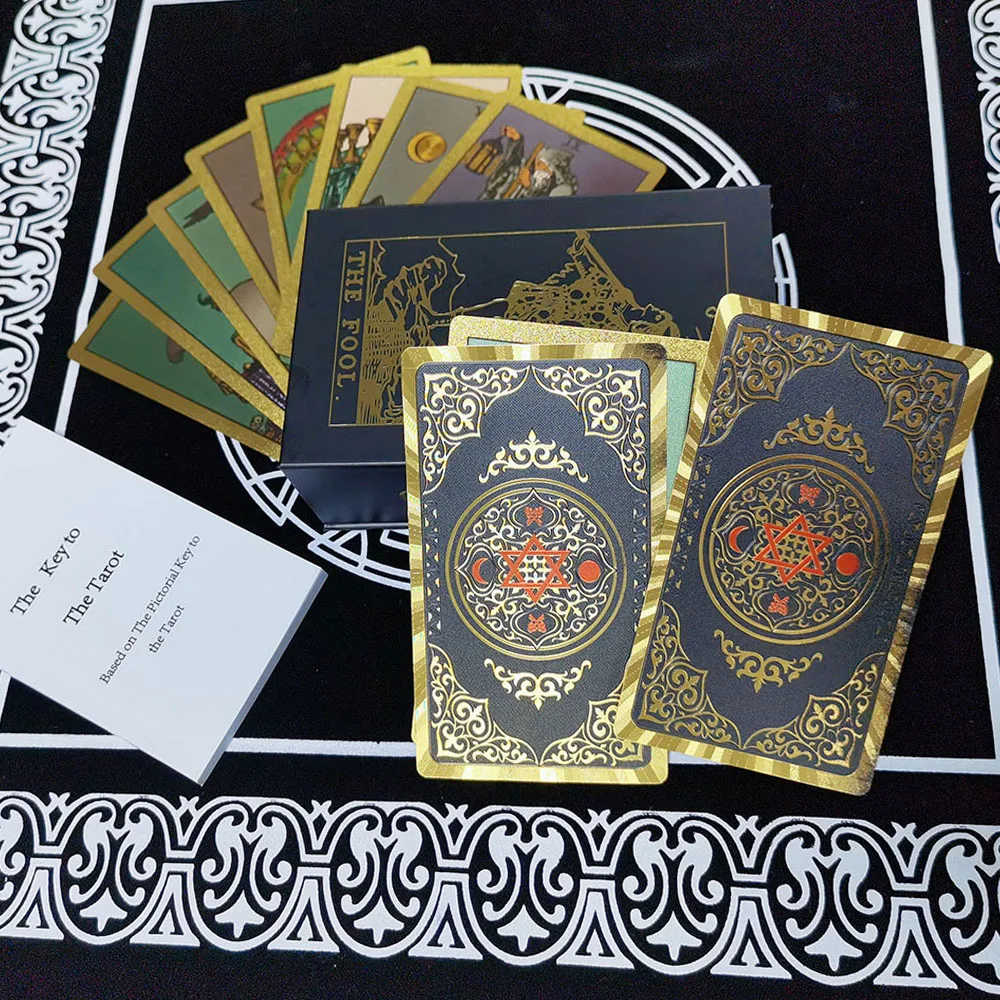 Luxury Set Tarot Cards Divination Six-pointed Star Golden Table Game Prediction Card Pvc Waterproof and Wear-resistant Gift Box