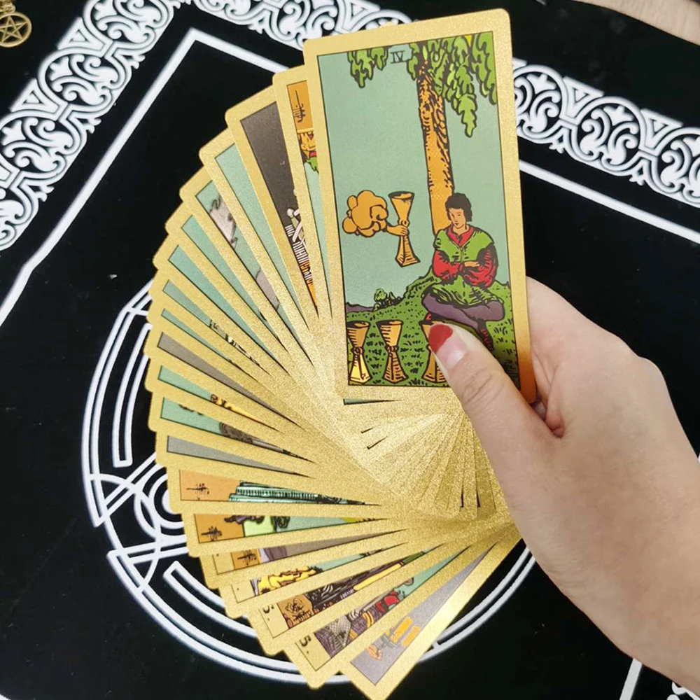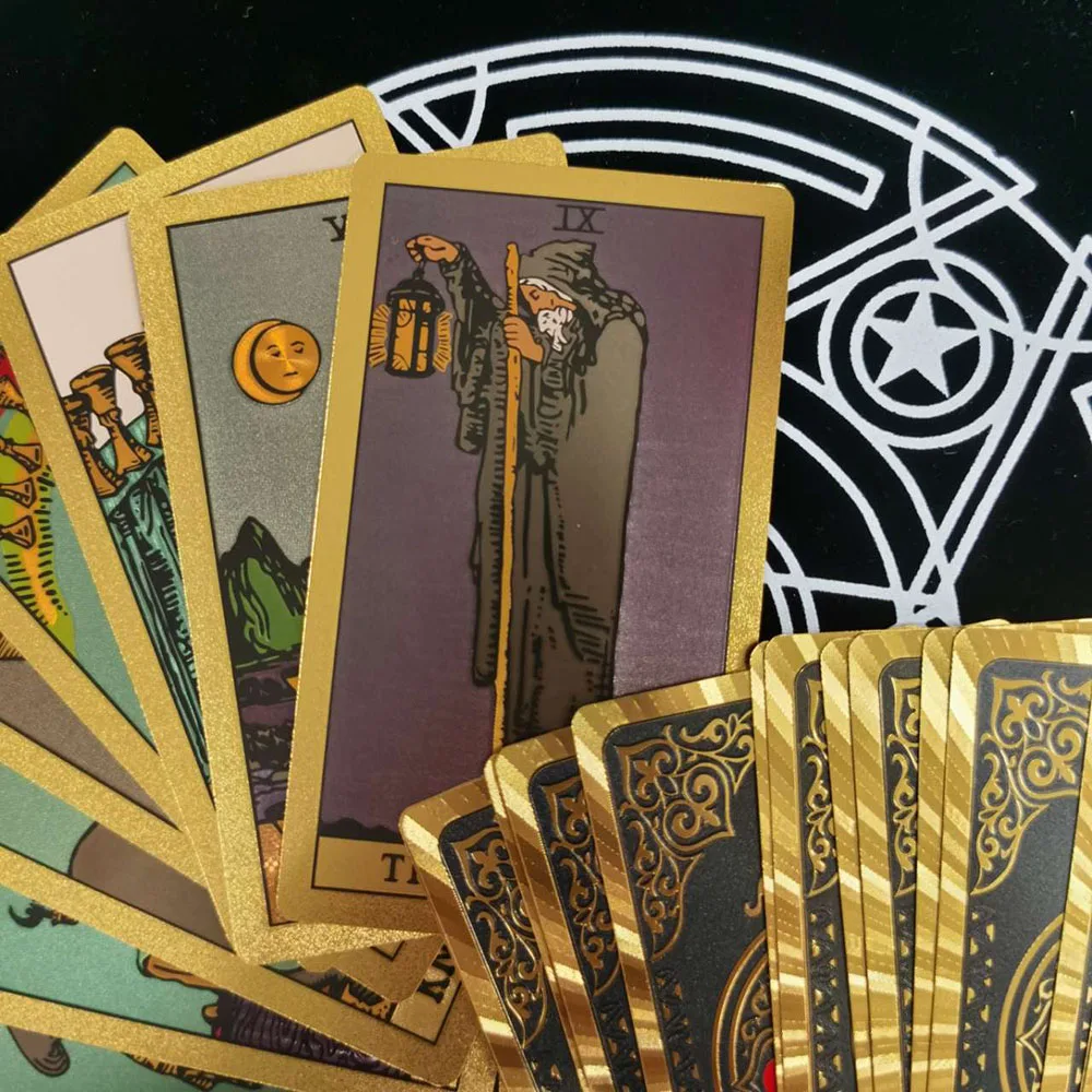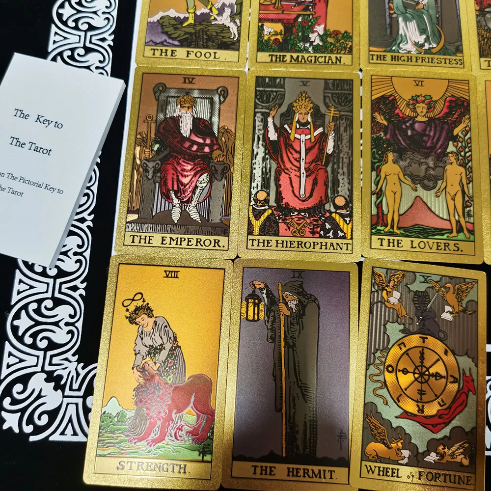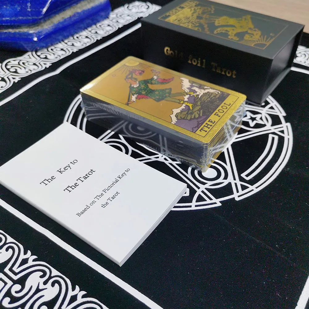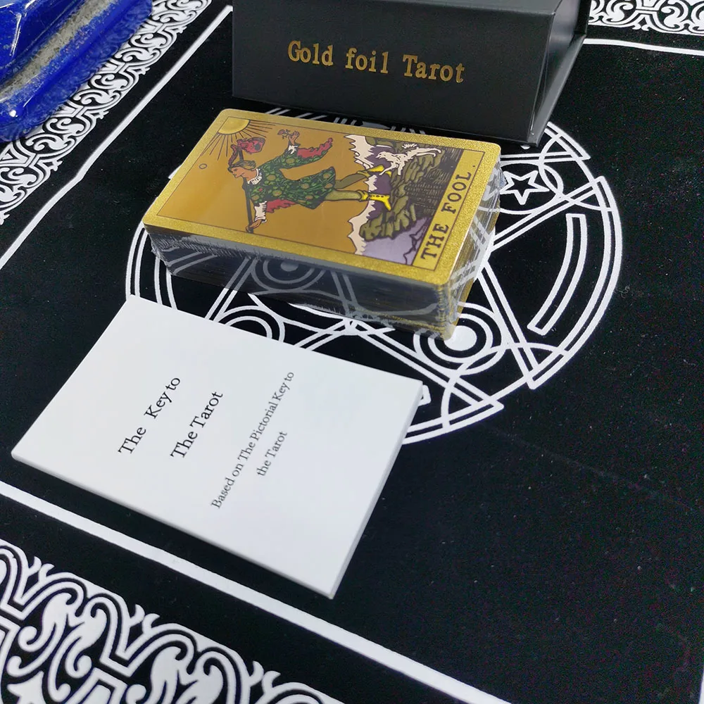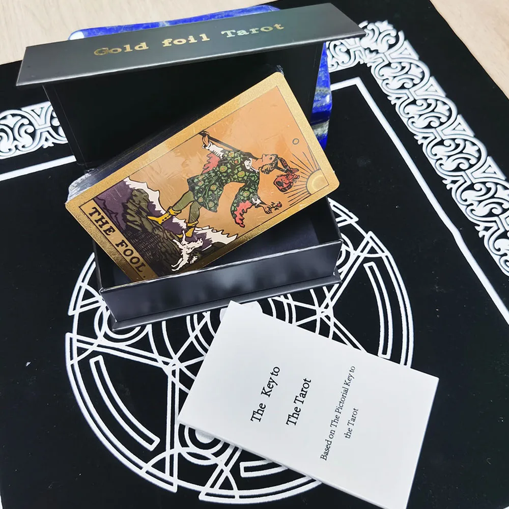 Luxury Set Tarot Cards Divination Six-pointed Star Golden Table Game Prediction Card Pvc Waterproof and Wear-resistant Gift Box
