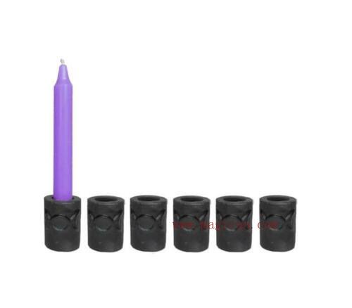 Set of 6 solid cast iron chime candle holder displaying a triple moon. Nice heavy safe way to burn your chime candles. 1.25″ tall with a 1″ base. Fits 1/2″ chime candle (C4’s). Candles not included.