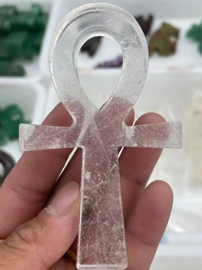 Natural crystal white crystal Egyptian goddess of the cross symbolic point healing reiki