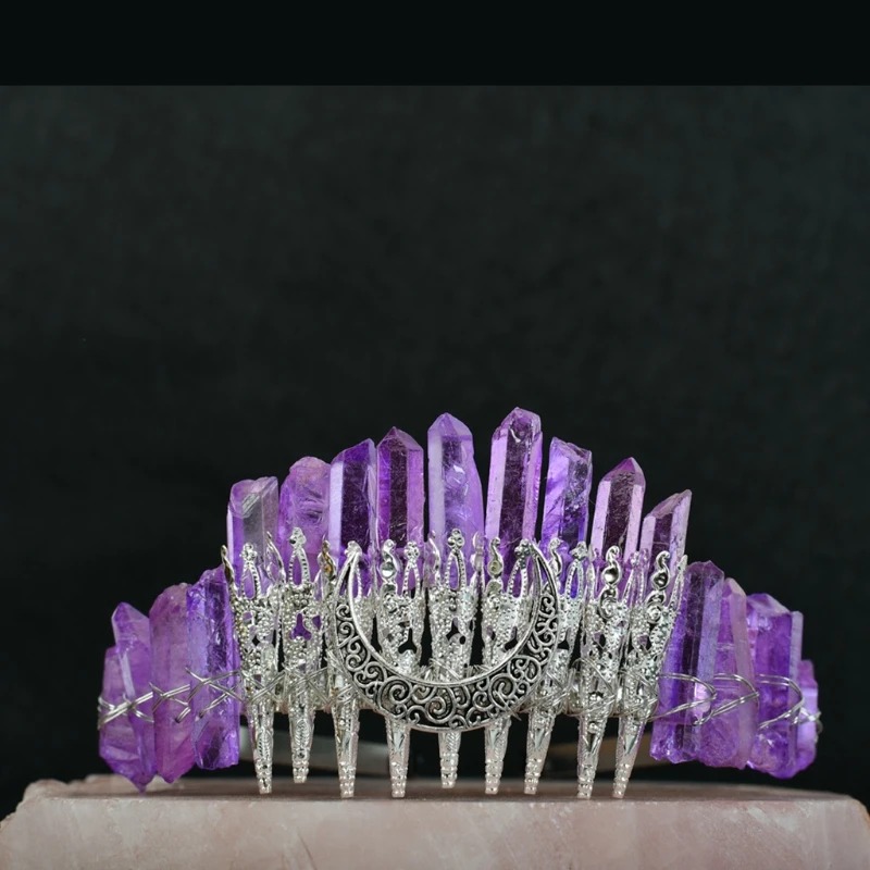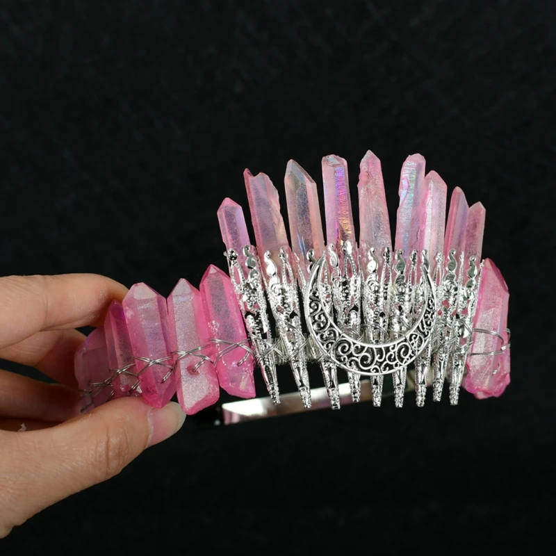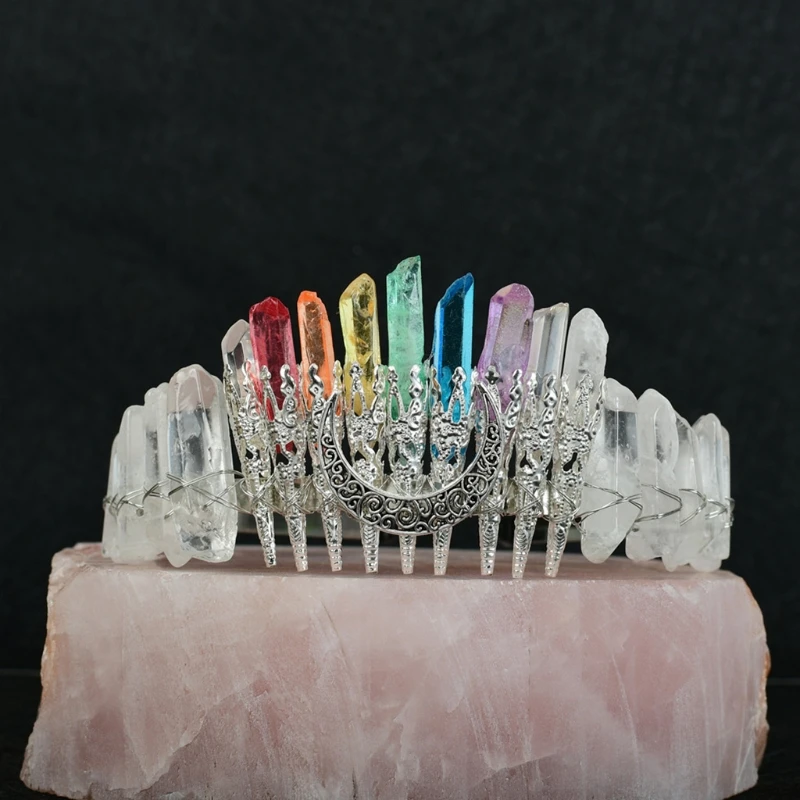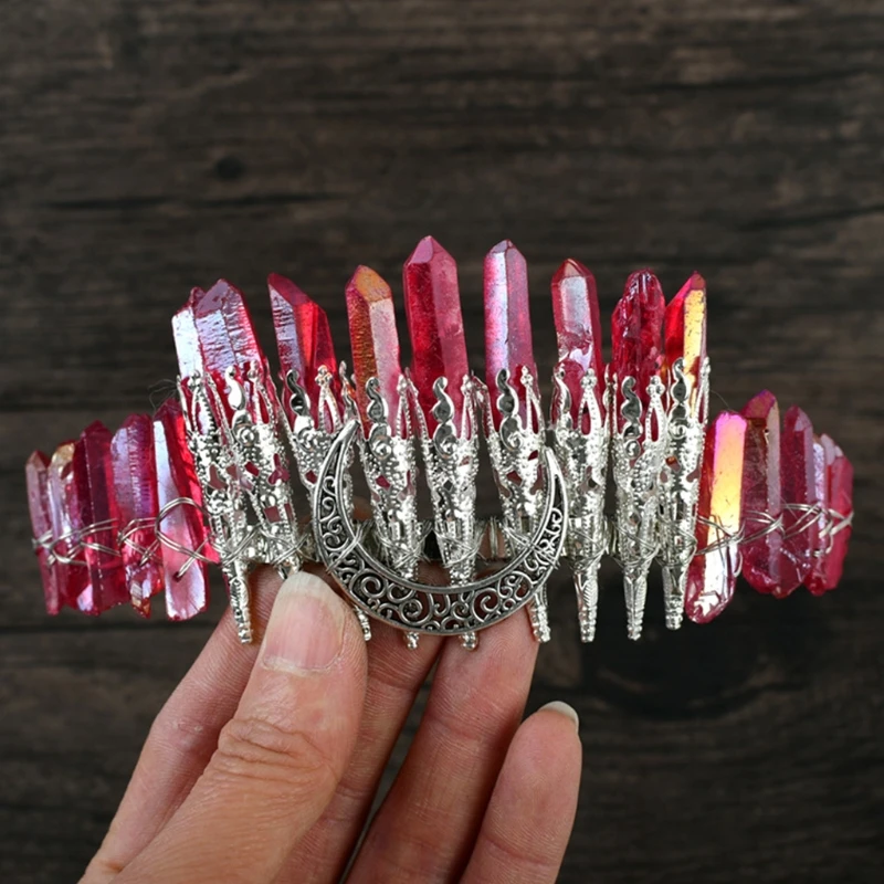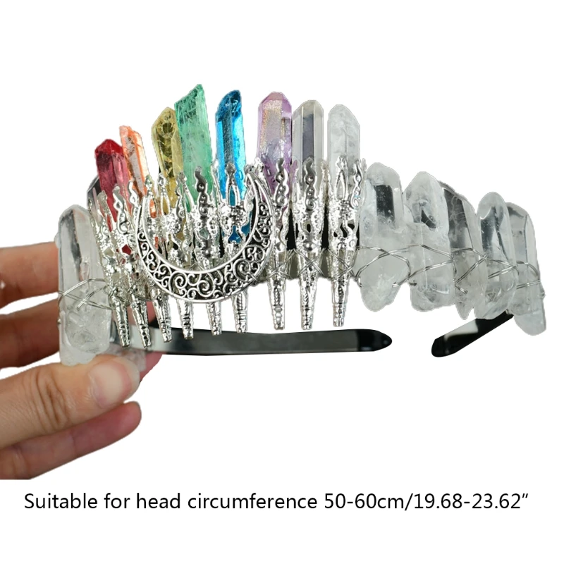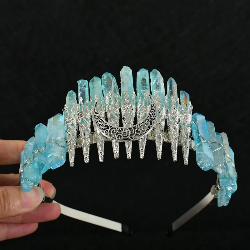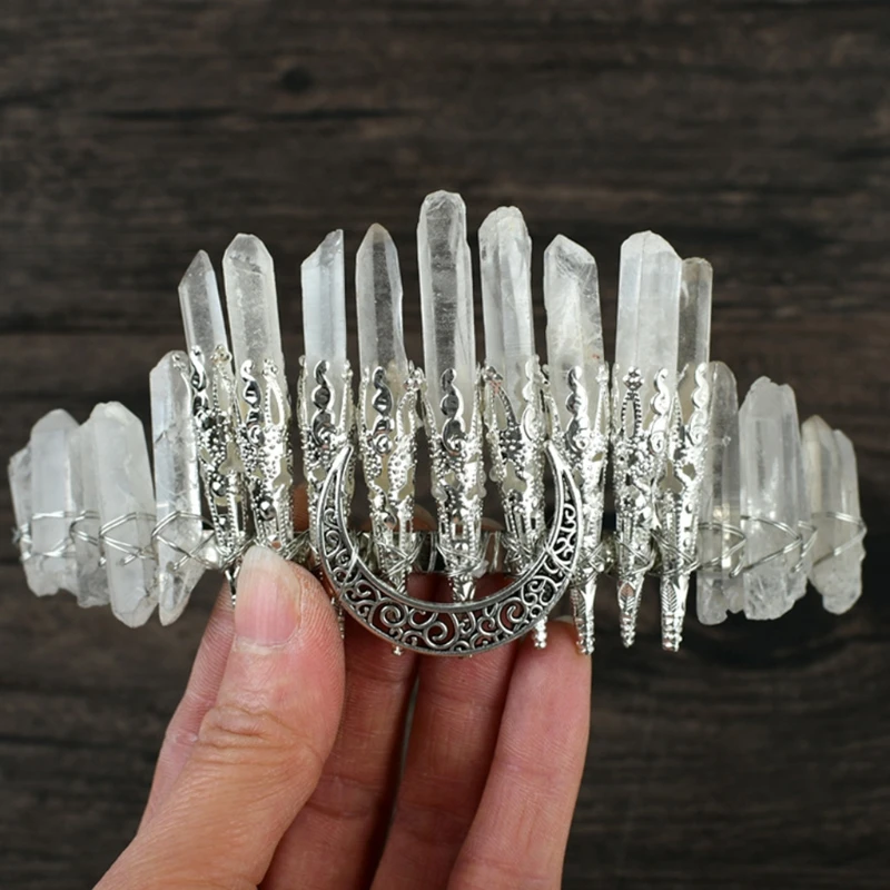 Bridal Wedding Headband Raw Crystal Crowns Headband with Moon Dragonfly Vintage Hairband