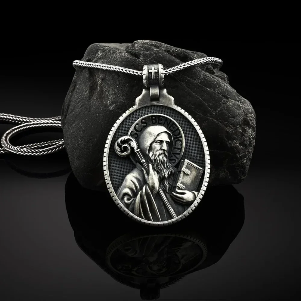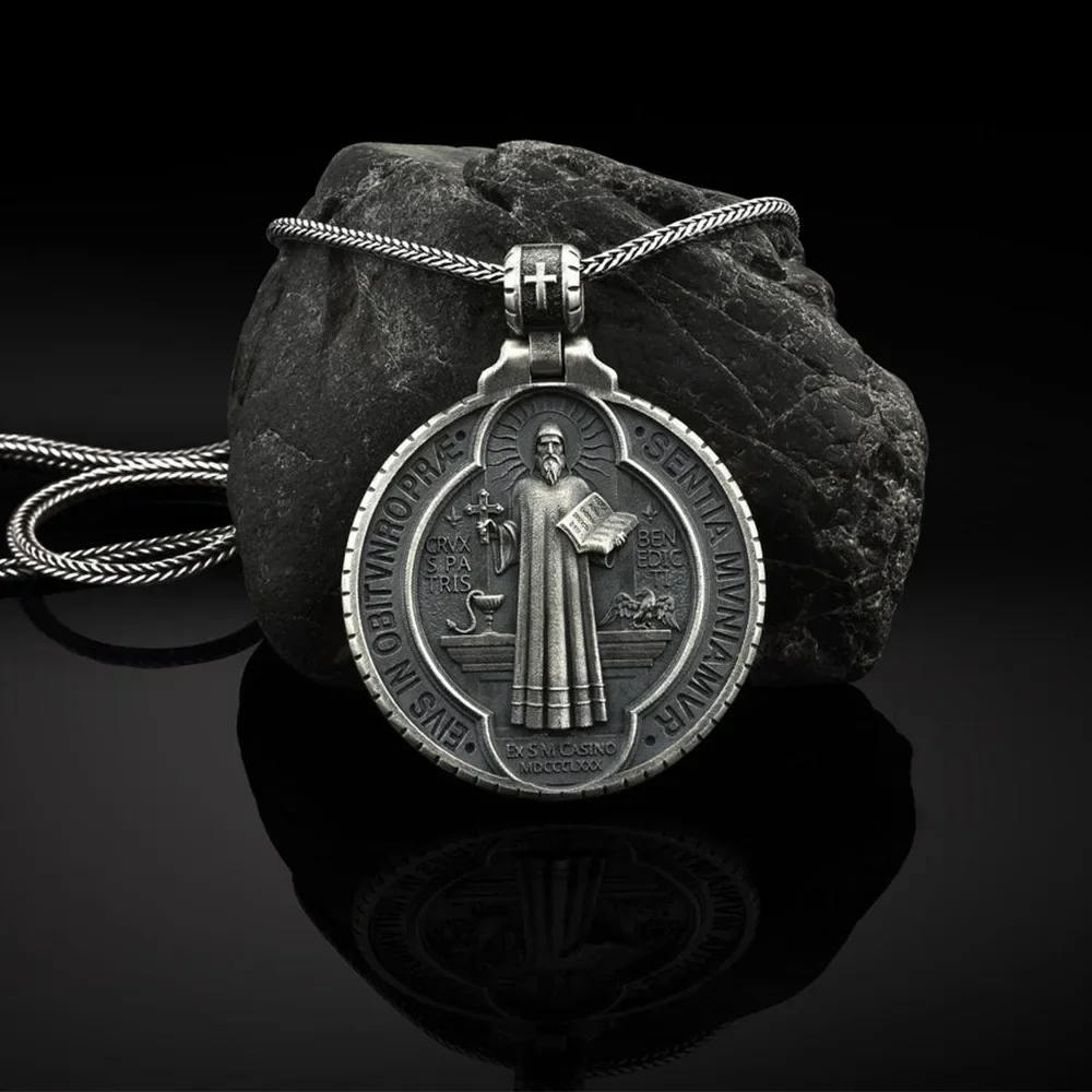 Embrace your spiritual journey with our Saint Benedict Necklace, a timeless treasure in the realm of Saint Benedict jewelry. Intricately crafted from sterling silver, this Saint Benedict Pendant embodies faith, protection, and divine grace.