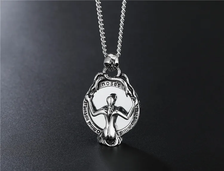 Name:Never Fade Stainless Steel Sexy Naked Woman Pendant Skull Double Snake Wrap Magic Mirror Vintage Necklace pendant HE135