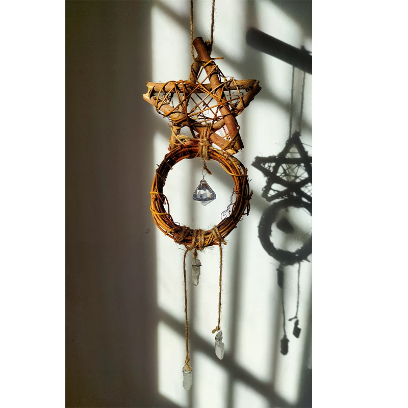 Witches bells have been long known to drive evil and malicious spirits away from ones home or business.They know the property is protected and to turn away. Not only will these bells bring beauty to your home and garden, but will also serve as a spiritual security system.The natural branches add natural crystals, and the white natural crystals act as energy to drive away the darkness. So that the home and body can be peaceful, safe and healthy
