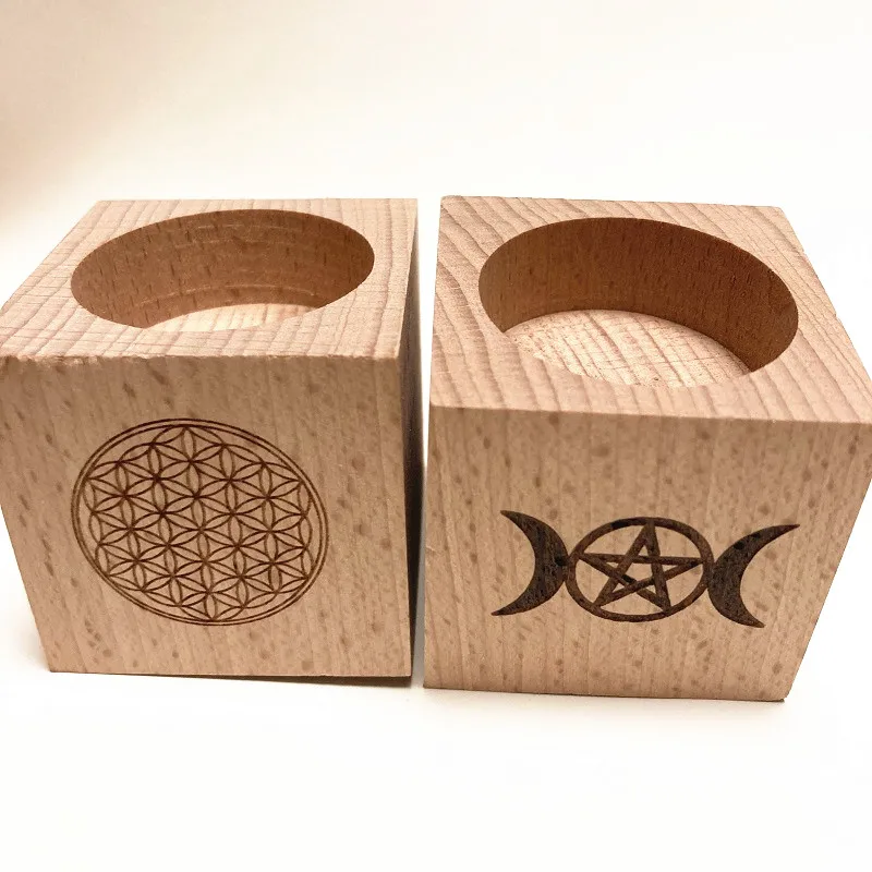 Wood Altar candle holders Pentagram wooden Candlestick / Pentacle Viking compass runes ritual light holders witchcraft supplies