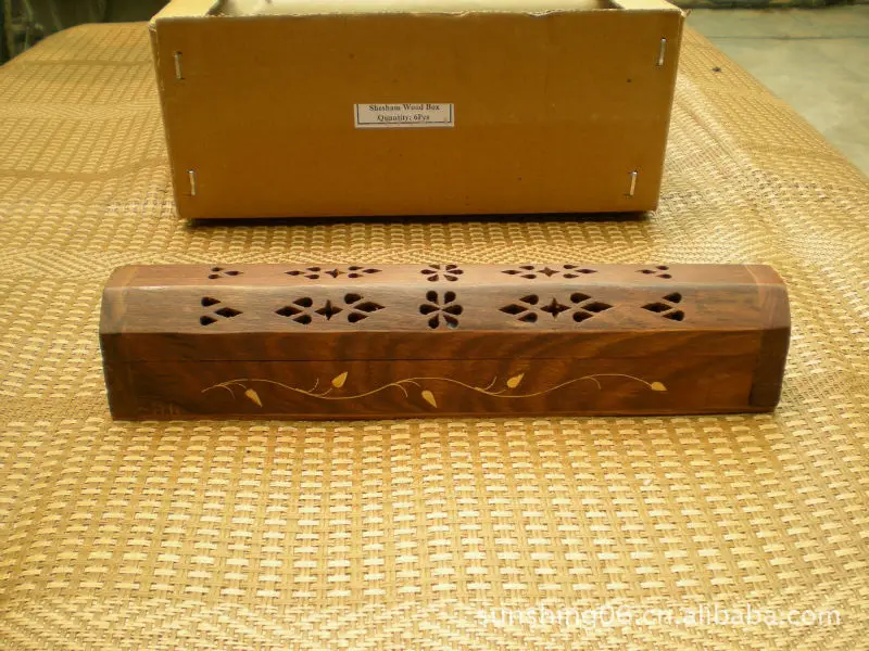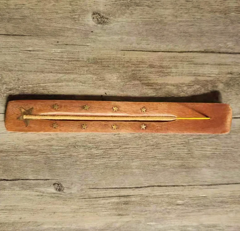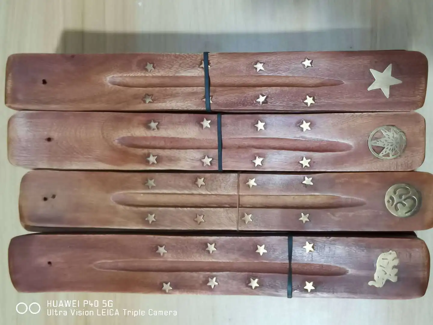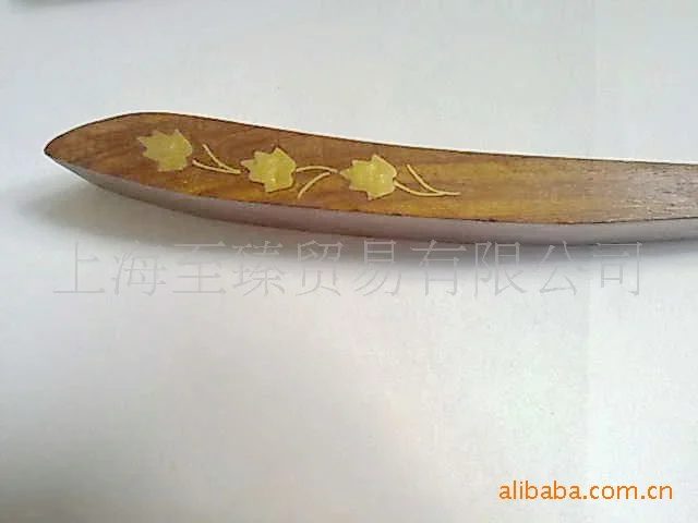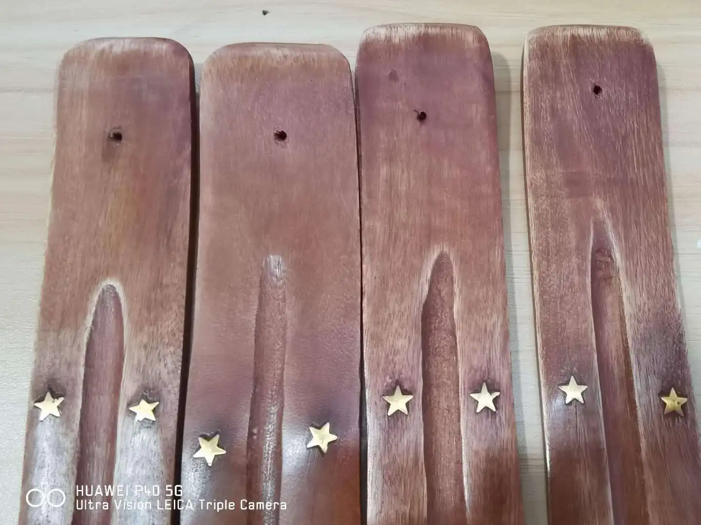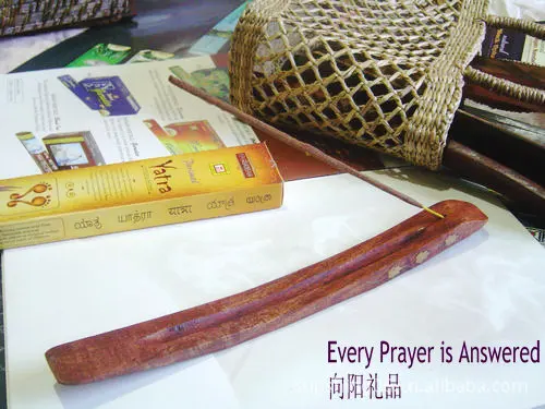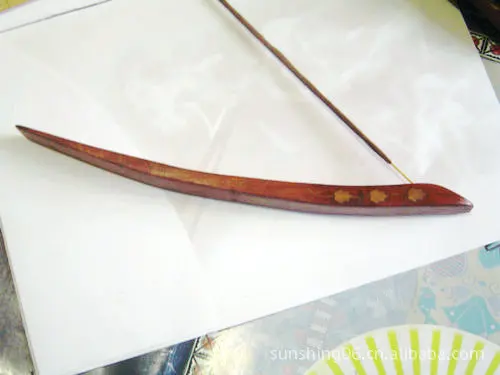 说明:本产品是用印度DIY,做成像弧形的形状,中间一个凹槽以装香灰,并在弧形抬起的一端专一个孔以插香,并在中间凹槽两边镶嵌铜的图案,这样既有实用性,也美观.原汁原味的印度香,需要”好马配好鞍”,所以需要配上原装的香板.