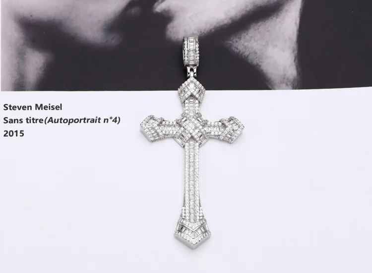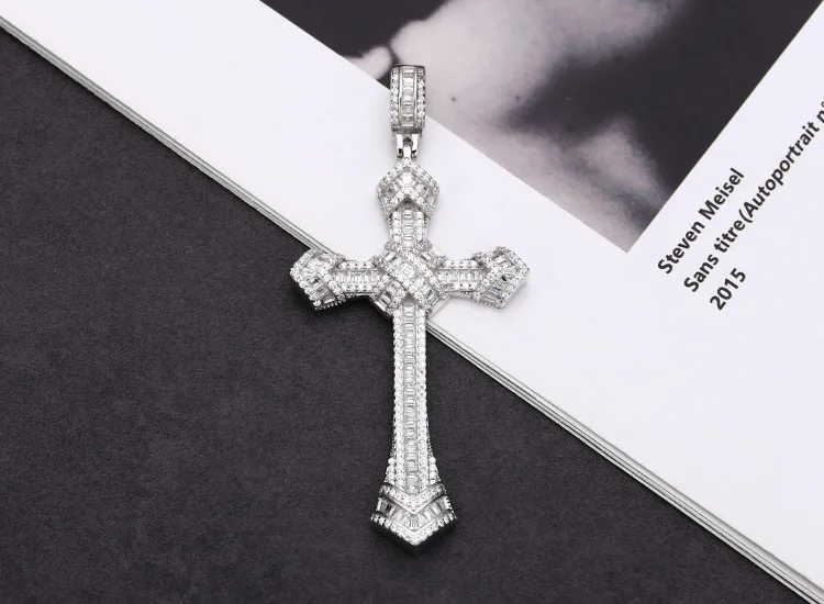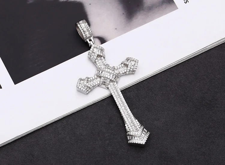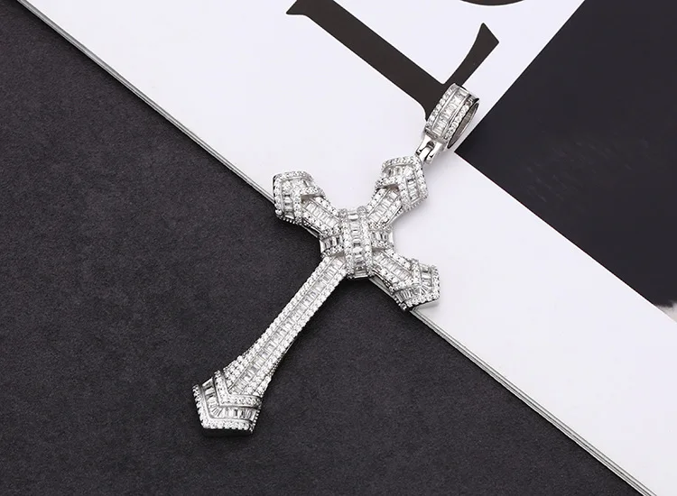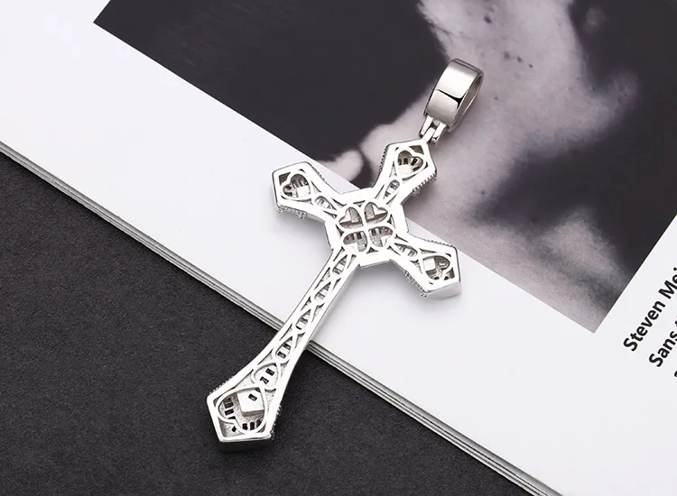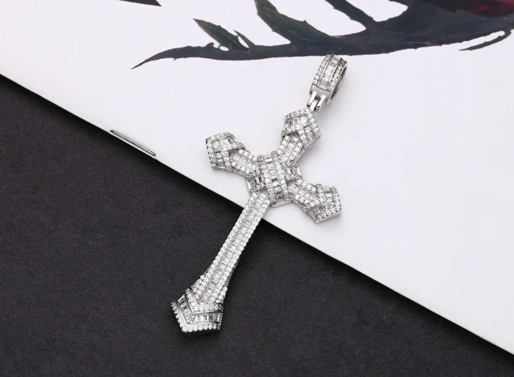 S925 Sterling Silver Pendants for Women Men New Fahion Super Flash Zirconium Diamond Large Cross Jewelry