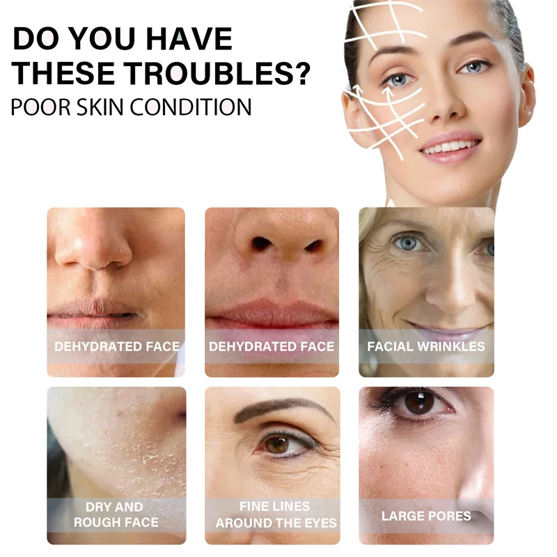 ▶Before use,Wrinkles around the eyes, visible nasolabial lines and