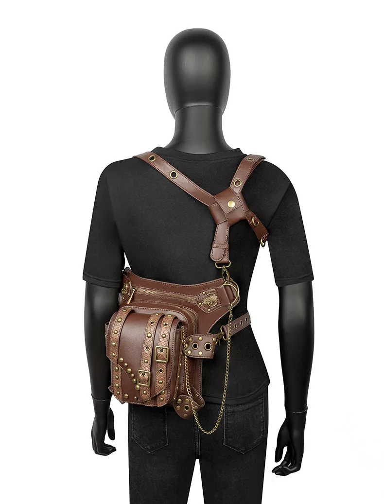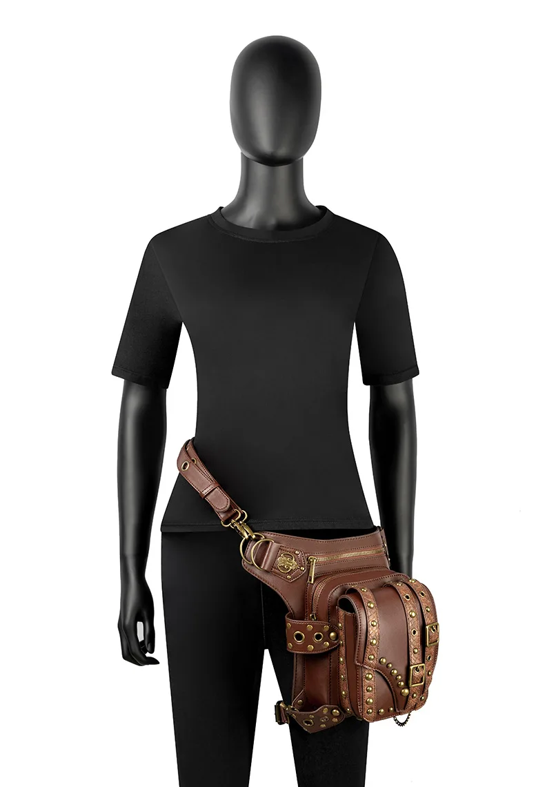 Lady Pockets Retro Messenger Bags Punk Vintage Steampunk Crossbody Women Shoulder Waistbag Travel Leg Bag Moto Biker Fanny Pack