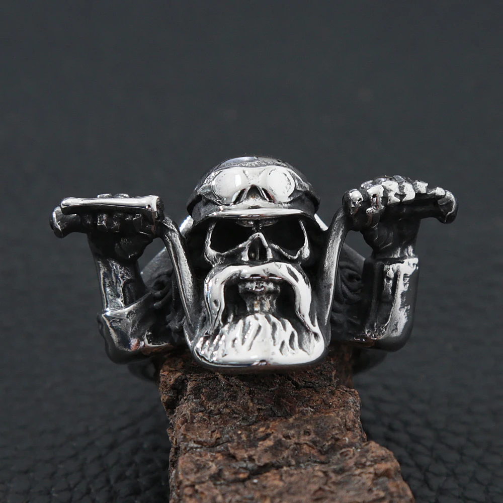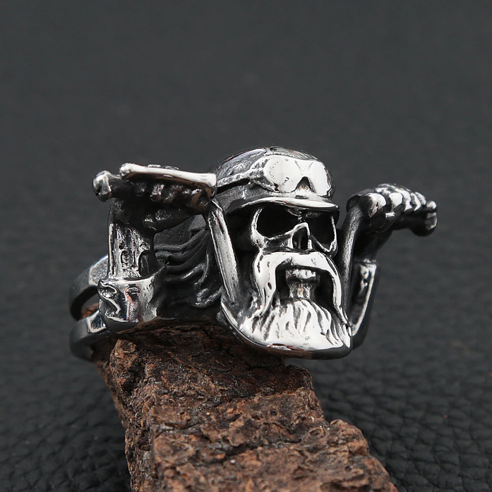 Name:Punk Rock Motorcyclist Skull Ring For Men Gothic Big Beard Skull Stainless Steel Biker Ring Fashion Men Jewelry Gift
