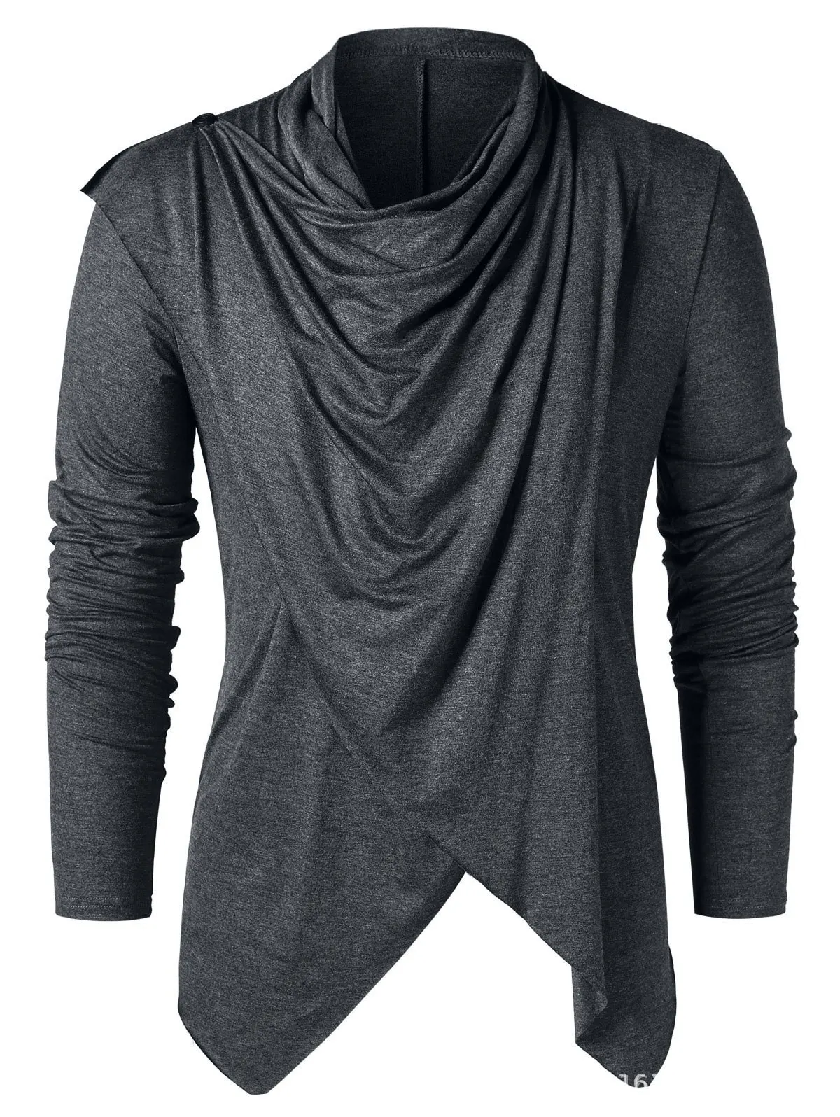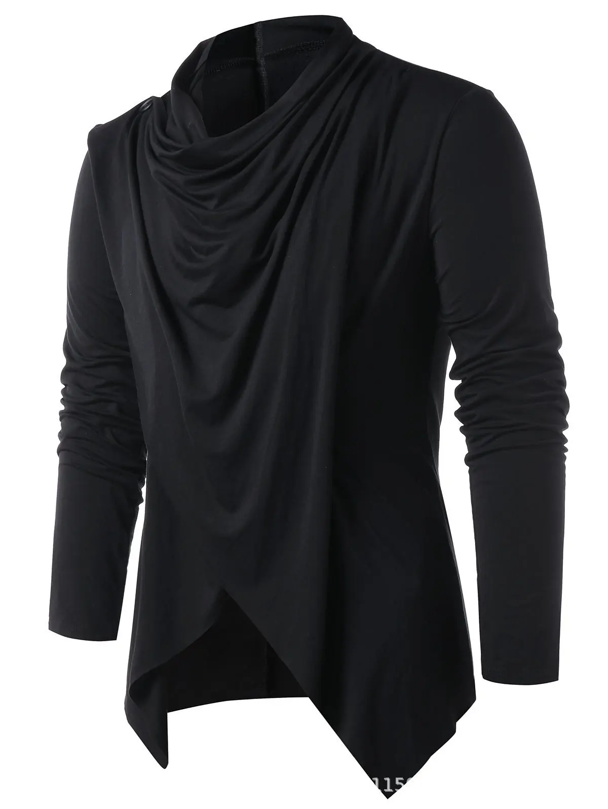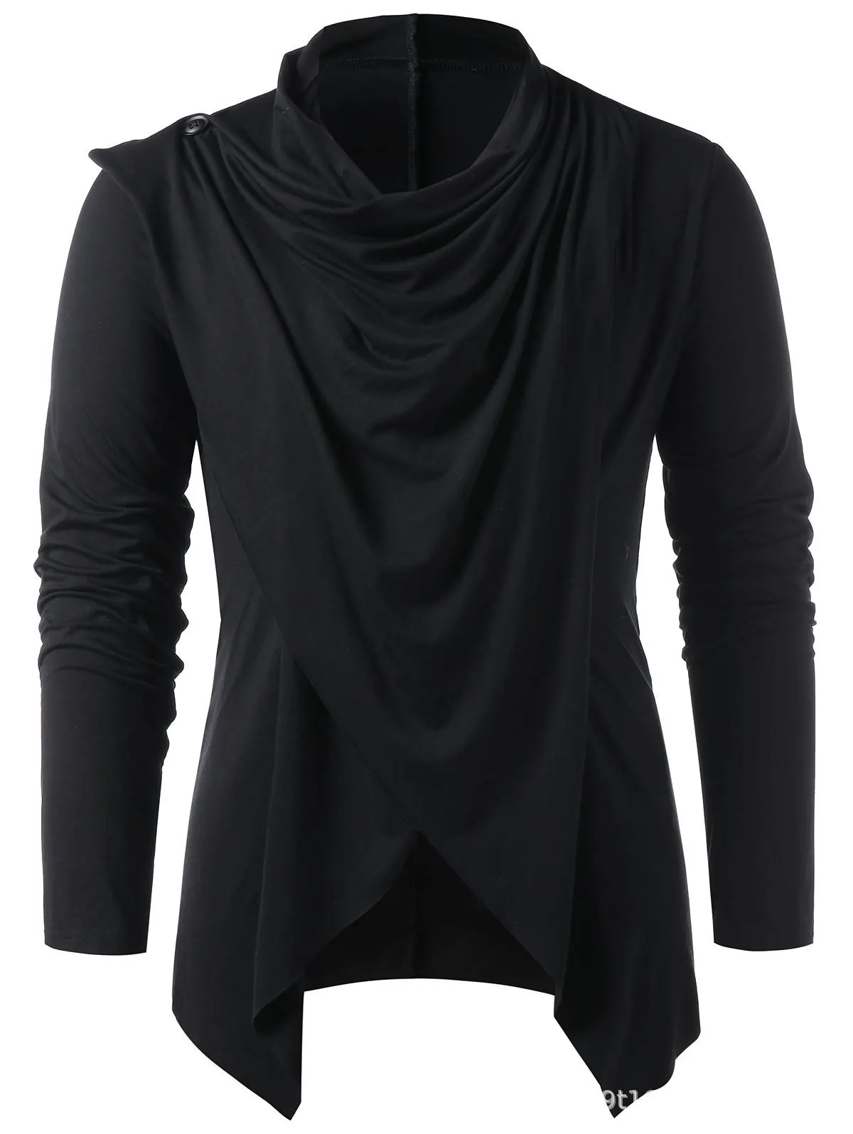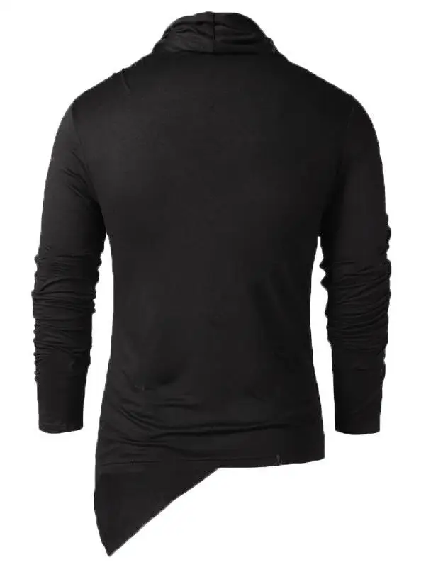 Medieval Costume Vintage Mens Two Ways Black Asymmetrical Overlap Cardigan Casual Long Sleeve Shawl Collar Open Front Tops Coat