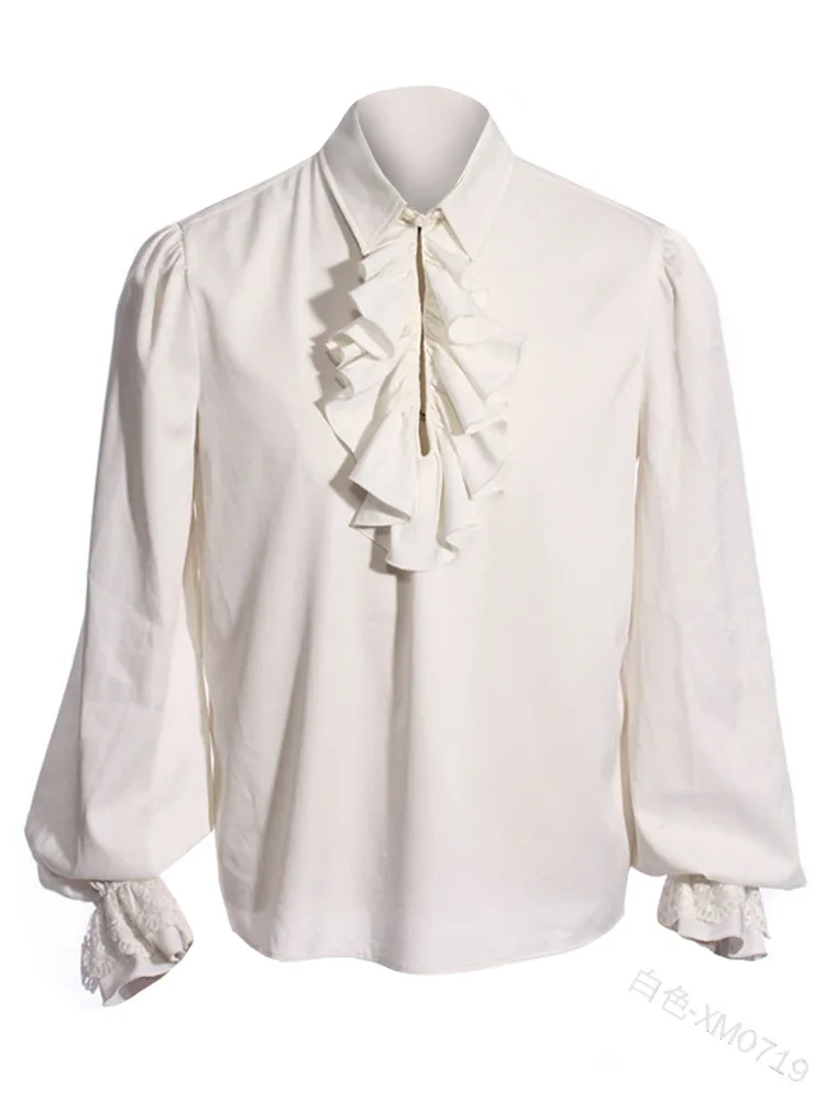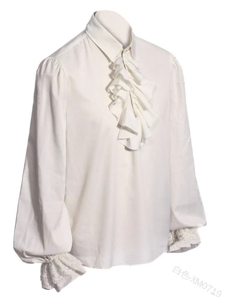 Men medieval Gothic Shirt Larp Viking Vintage Bridegroom Cosplay Costume Top Princes white Shirt Stage perfoming outfit