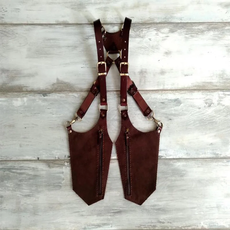 Steampunk Medieval Leather Shoulder Bag Vintage Phone Case Wallet Double Pocket Holster Viking Pirate Costume Purse Men Women