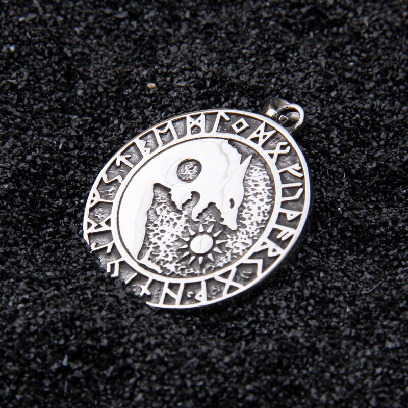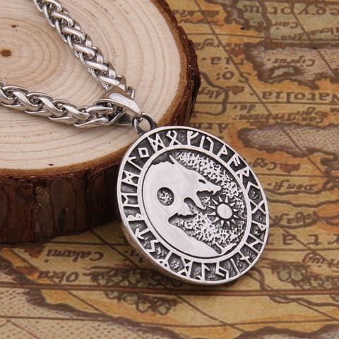 Magicun Viking Great~new arrival stainless steel Viking Wolf rune pendant necklace men gift