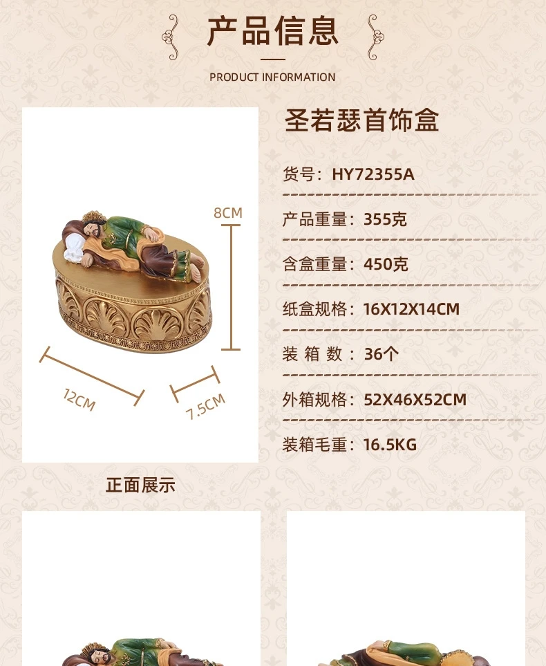 Home Decor St.Joseph Jewelry Box Religious Catholic Statue Earring Organizer Necklace Orthodox Resin Crafts Church Utensils