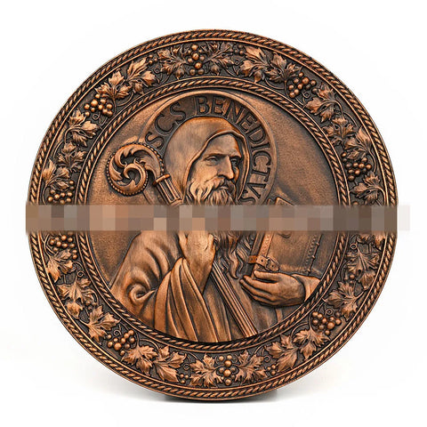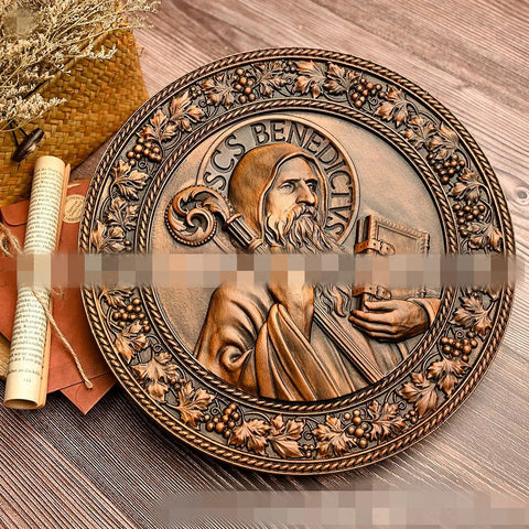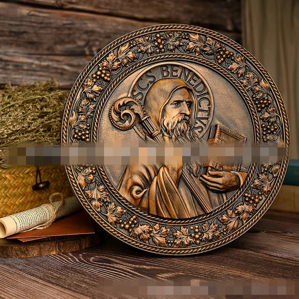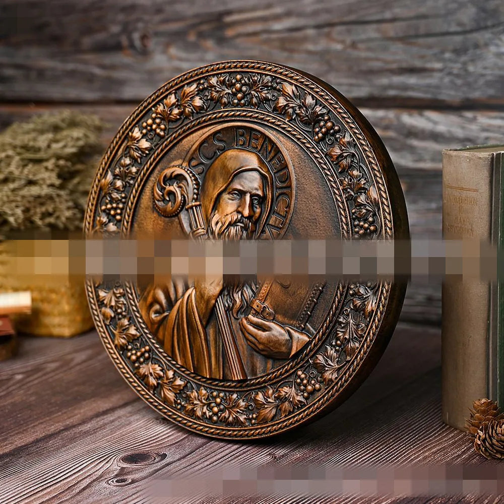 Mass Saint Benedict Beech Wood Carving Craft Church Catholic Deocration Prayer Disc Church Souvenirs Figures