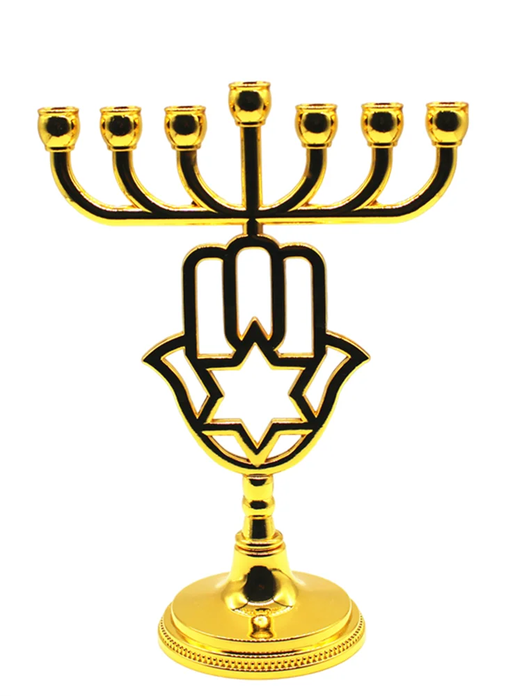 Menorah Candle Holders Gold Hand of Fatima Jewish Home Decoration Religious Judaica Israel Candelabra David Star