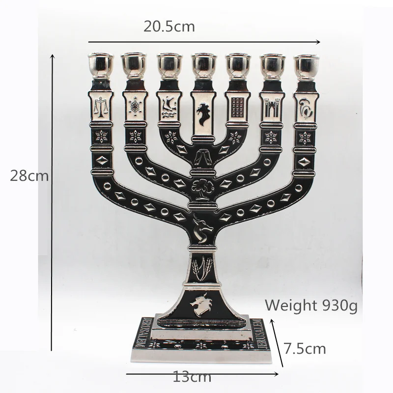 Menorah Hanukkah Candle Holder Jerusalem Home Decor 12 Tribes Jewish Candelabra Judaica 7 Branch Metal Candlestick