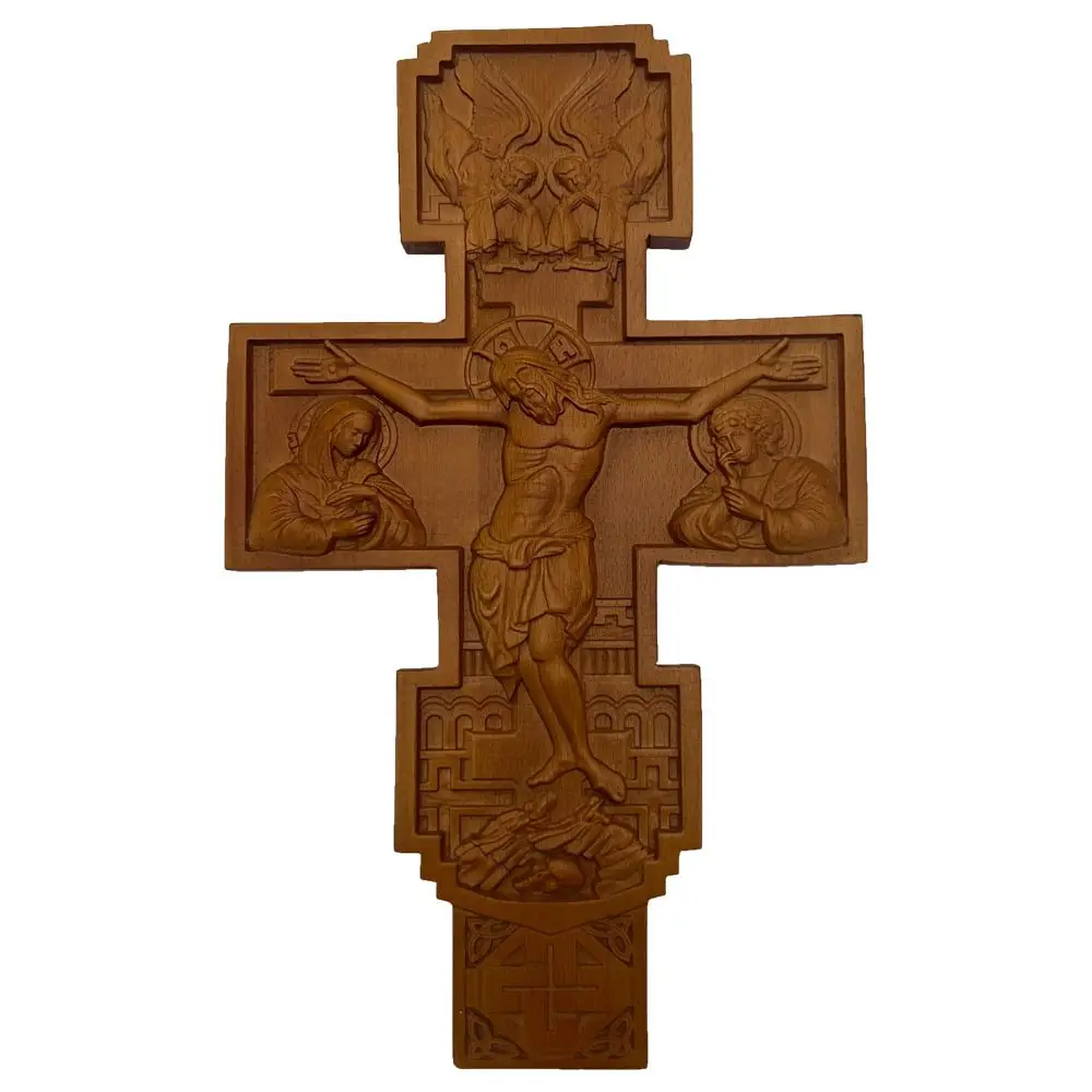 Religious Crafts Orthodox Cross Beech Wood Carving Holy Family Trinity Home Decoration Church Souvenirs