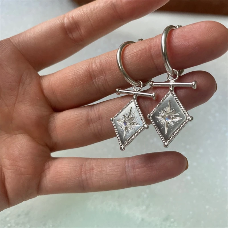 Inlaid Moonstone Polaris Pendant Earrings Geometric Prismatic Drop Earrings