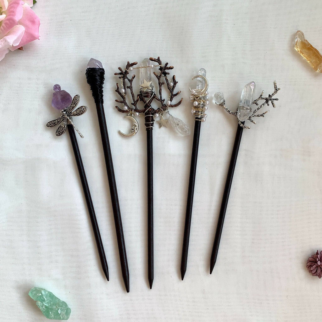 Natural quartz stone wood hairpin 19-20 cm handmade crystal hairpin bridal hair comb crystal hair ornament BOHO wedding gift