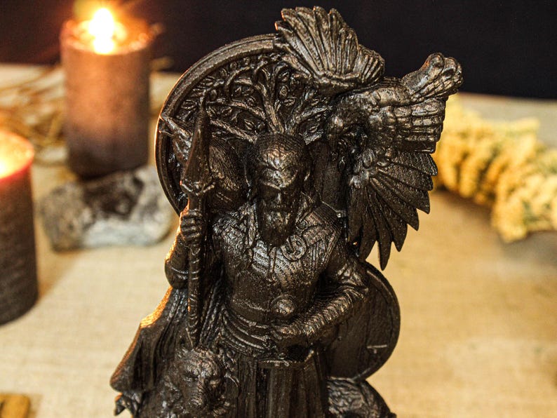 This collectible wooden figurine is crafted in the traditional Scandinavian style, made from natural wood and finished with a protective oil wax coating. It’s ideal for altars or as a unique piece of decor in your home. The figurine does not feature any signatures or logos from our workshop, but if you'd prefer the artisan’s signature, please include a request in the order notes or contact us directly. The back of the statue if flat.
