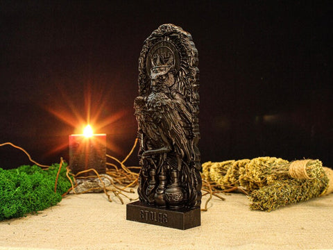 This collectible wooden figurine is crafted in the traditional style, made from natural wood and finished with a protective oil wax coating. It’s ideal for altars or as a unique piece of decor in your home. The figurine does not feature any signatures or logos from our workshop, but if you'd prefer the artisan’s signature, please include a request in the order notes or contact us directly. The back of the statue if flat.