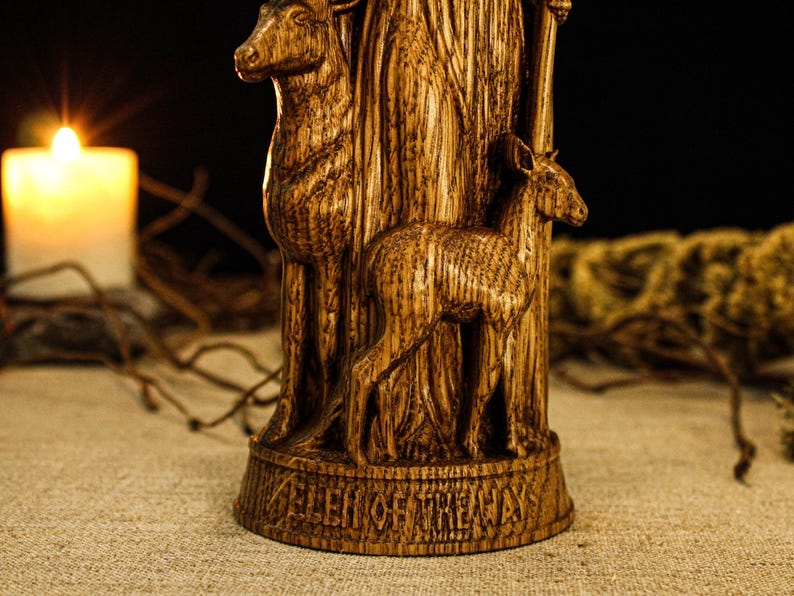 This collectible wooden figurine is crafted in the traditional Scandinavian style, made from natural wood and finished with a protective oil wax coating. It’s ideal for altars or as a unique piece of decor in your home. The figurine does not feature any signatures or logos from our workshop, but if you'd prefer the artisan’s signature, please include a request in the order notes or contact us directly. The back of the statue if flat.