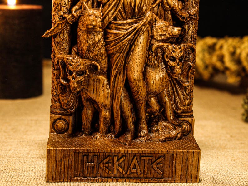 This collectible wooden figurine is crafted in the traditional style, made from natural wood and finished with a protective oil wax coating. It’s ideal for altars or as a unique piece of decor in your home. The figurine does not feature any signatures or logos from our workshop, but if you'd prefer the artisan’s signature, please include a request in the order notes or contact us directly. The back of the statue if flat.