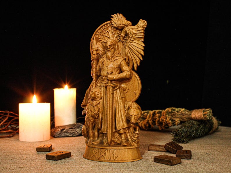 Odin statue, Carved Odin Figure, Allfather, Wotan, Norse God Statue, Viking Statue, Norse Mythology, Norse Pagan, Altar Figurine