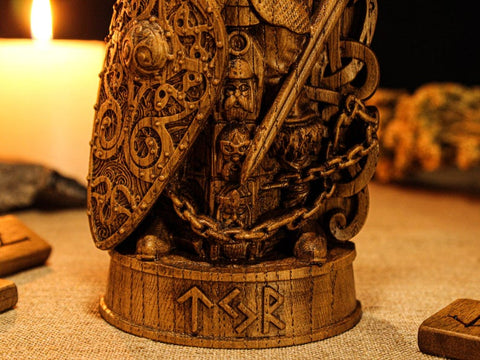 This collectible wooden figurine is crafted in the traditional Scandinavian style, made from natural wood and finished with a protective oil wax coating. It’s ideal for altars or as a unique piece of decor in your home. The figurine does not feature any signatures or logos from our workshop, but if you'd prefer the artisan’s signature, please include a request in the order notes or contact us directly. The back of the statue if flat.