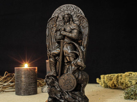 This collectible wooden figurine is crafted in the traditional style, made from natural wood and finished with a protective oil wax coating. It’s ideal for altars or as a unique piece of decor in your home. The figurine does not feature any signatures or logos from our workshop, but if you'd prefer the artisan’s signature, please include a request in the order notes or contact us directly. The back of the statue if flat.