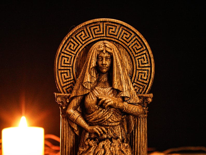 This collectible wooden figurine is crafted in the traditional style, made from natural wood and finished with a protective oil wax coating. It’s ideal for altars or as a unique piece of decor in your home. The figurine does not feature any signatures or logos from our workshop, but if you'd prefer the artisan’s signature, please include a request in the order notes or contact us directly. The back of the statue if flat.