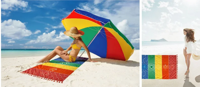【Promise】The yoga chakra tapestry with non-slip, insanely absorbent, quick drying, Eco-friendly and Zero odor.We promise to show you the finest rainbow blanket, if you are not satisfied, please allow us to pay for you.