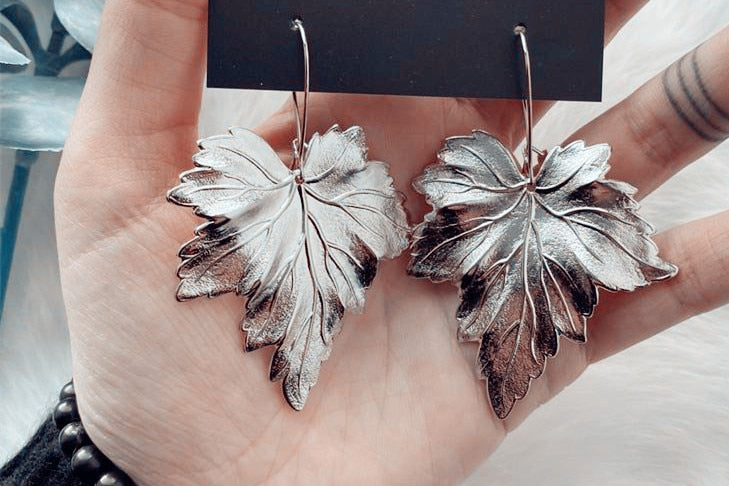New Design! Maple Leaf Drop Hoop Earrings Nature Jewelry